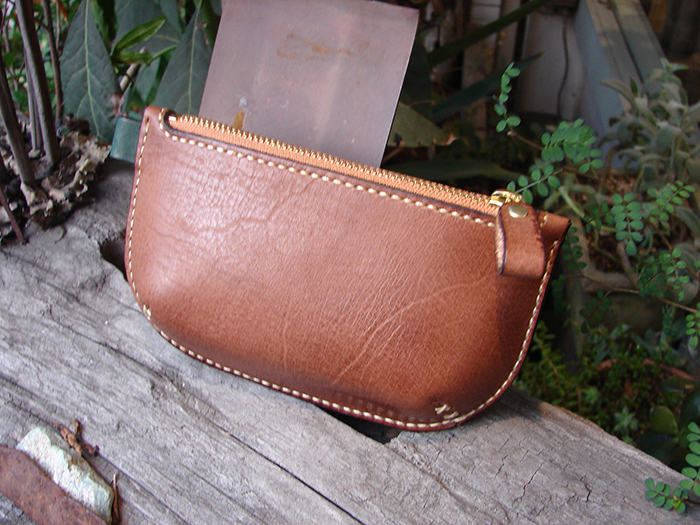 ポイント: ファスナーの取り付け型や一枚革にマチをつけるが学べます。